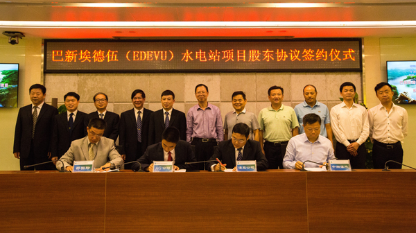 本報澧水訊(通訊員 吳恢民 趙延斌)6月2日下午,巴布亞新幾内亞埃德伍水電站項目股東協議簽約儀式在湖南省澧水公司舉行。集團總經理周友文、副總經理劉躍龍、陳浩及相關單位負責人參加簽約儀式。