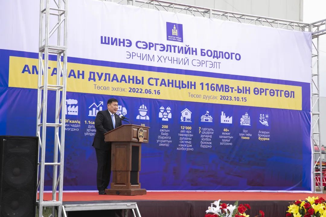 奧雲額爾登總理在緻辭中充分肯定集團安裝公司蒙古項目管理團隊。他表示,随着蒙古國烏蘭巴托市的發展,供熱需求量激增,該項目建成後,将為居住在烏蘭巴托巴彥祖爾和區30%的人口提供可靠的熱源,相信以後可以為城市開發項目的實施創造基本條件。